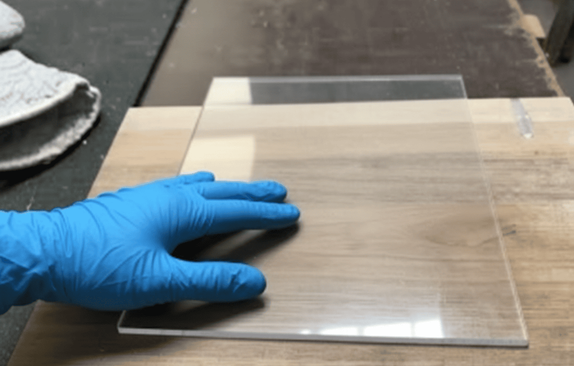 Um ein bestmögliches Ergebnis zu erhalten, sollten Sie die Acrylplatte vorab sorgfältig reinigen. Vor allem hier gibt es einige Punkte zu beachten, um Kratzer auf der Platte zu vermeiden. Ziehen Sie die Schutzfolie des PLEXIGLAS® so spät wie möglich ab und Reinigen Sie das Material mit einem speziellen antistatischen Kunststoffreiniger und einem Mikrofasertuch sorgfältig. Lassen Sie die Platte vor der weiteren Bearbeitung unbedingt sorgfältig trocknen.